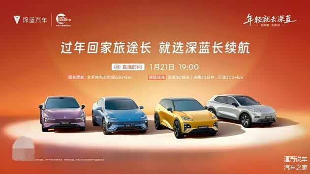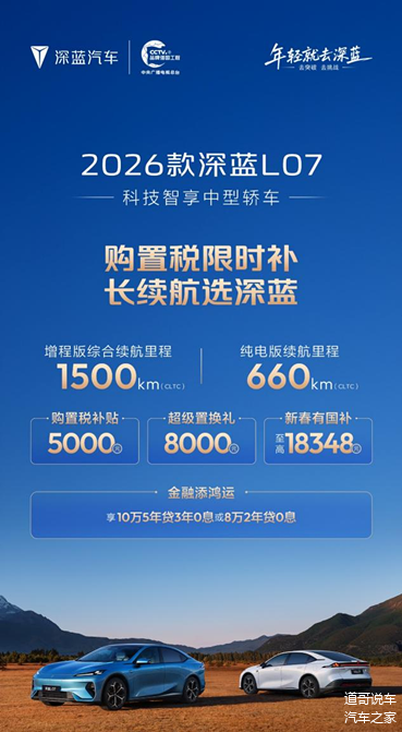 针对春节返乡大潮即将开启,1月21日,深蓝汽车发布春节前重磅限时补贴福利,覆盖深蓝家族S05/S07/L06/L07四款长续航车型。可以说,此时入手不仅能赶上新春出行用车节奏,更能享受实实在在的成本节省,是新春购车的最优窗口期。