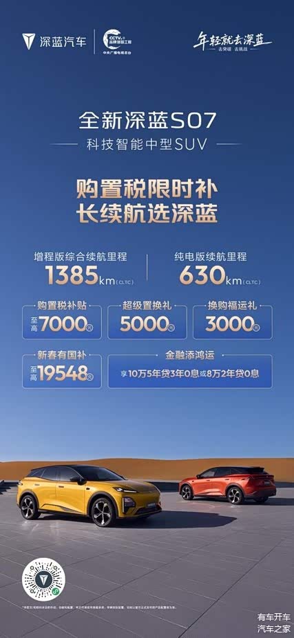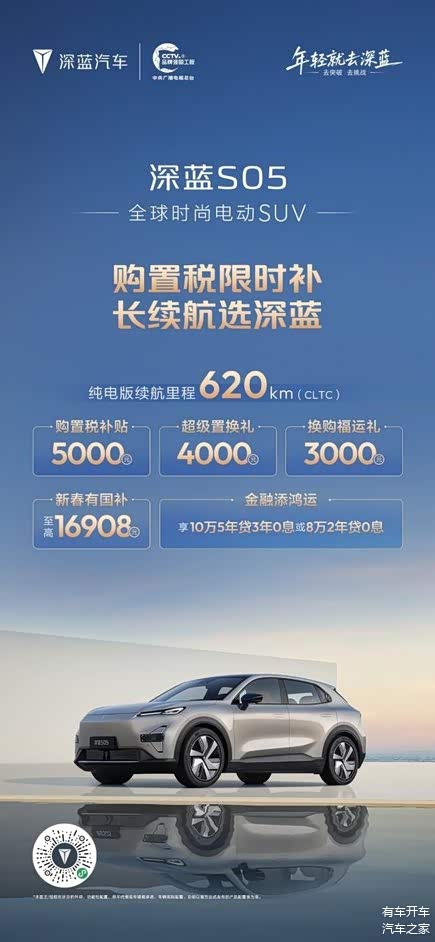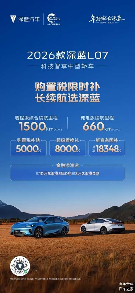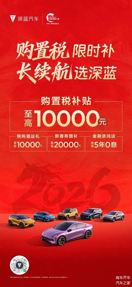 马年行好运,新春购新车。春节前夕正值购车政策红利期,选择深蓝汽车,也就意味着将同时获得 “央企品质保障、长续航核心优势、全系限时补贴” 三重利好。2026,和深蓝一起,即刻焕新座驾,解锁新春出行新体验!