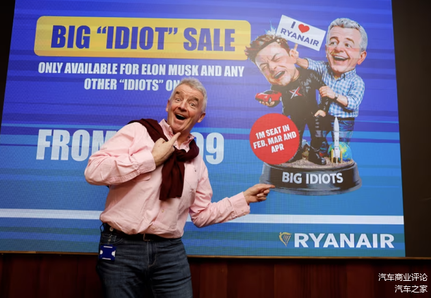 马斯克(Elon Musk)又和人干架了,这次的对象是欧洲瑞安航空公司(Ryanair)CEO迈克尔·奥利里(Michael O'Leary)。