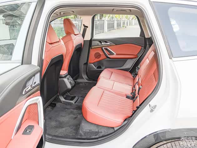 另外,值得一提的是,相比燃油版的 宝马X1,纯电动版的宝马iX1后排中间地台的高度有所降低,毕竟不需要四驱系统的布置传动轴了,也就不需要高高的凸起了。