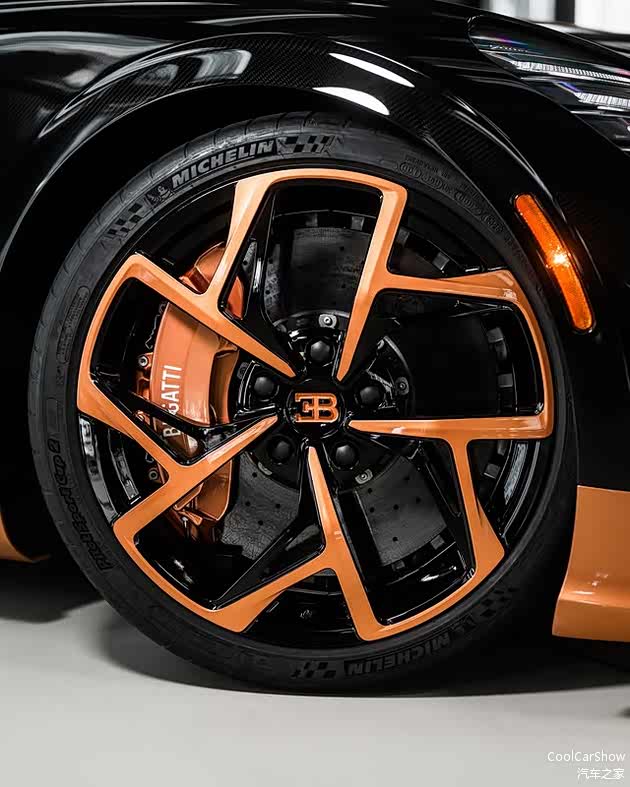 行走方面Mistral的配置和Chiron Super Sport一样,配备了前后碳陶刹车,前20后21寸的花瓣造型轮毂,搭配前285/30R20后355/25R21的轮胎规格。