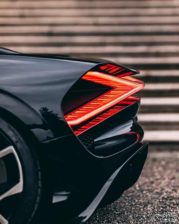 相比 Chiron扁平的大灯,Mistral的大灯造型更加立体,而且隐藏在日行灯条中有中空的扰流设计,优化车头的空气动力学。新造型的尾灯内嵌在车身里,点亮的时候相当有辨识度。