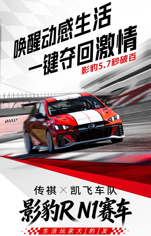 1月22日消息,广汽传祺官方今日宣布,由凯飞车队和广汽传祺联合打造的 影豹R N1赛车官宣上市,该车基于影豹R平台,5.7秒即可破百,动感价9.8万元起。
