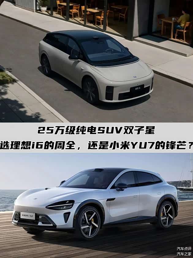 在竞争白热化的25万元级纯电SUV市场,理想i6与 小米YU7无疑是当下最受关注的两大“流量明星”。一边是深谙家庭用户需求的理想,推出的“标配即顶配”纯电之作;另一边是携生态与性能参数强势入场的小米,其首款SUV自亮相便热度不减。