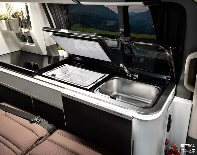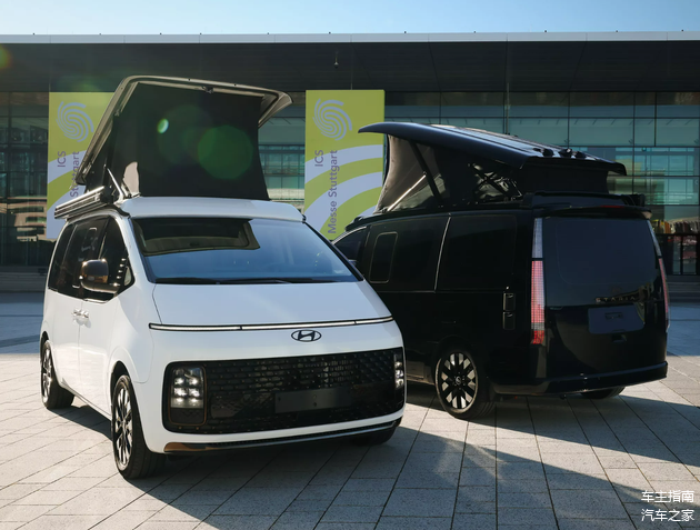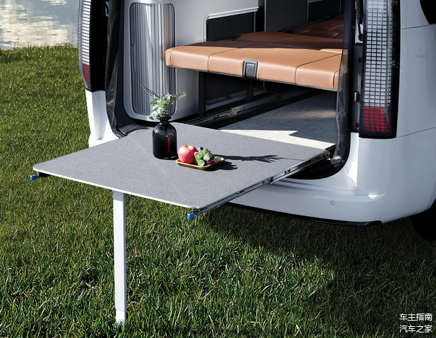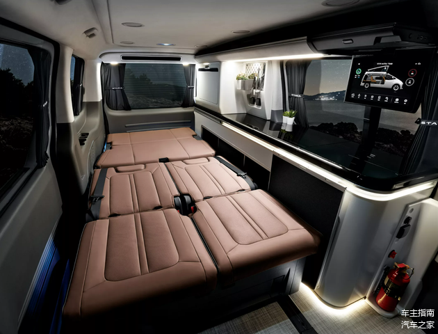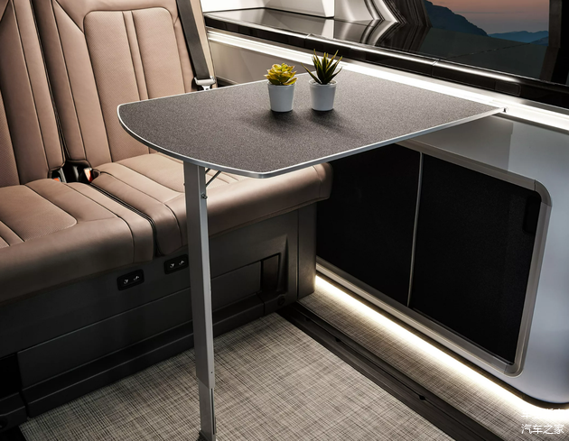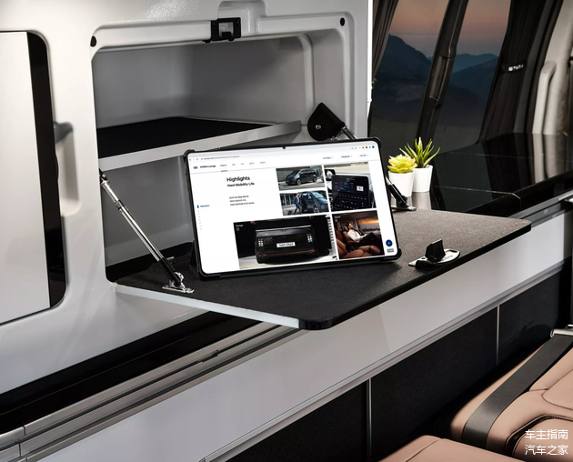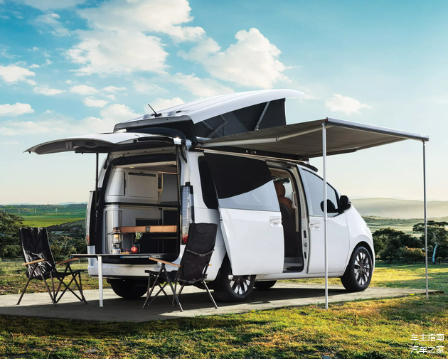 车内设计更是“大有乾坤”,现代STARIA Camper Concept的二排座椅支持完全放平,形成一张“大床”,而侧面还设计有厨房台面、洗手盆、冰箱、功能控制屏幕等,车辆还搭载有可移动小桌板,可以在车尾拓展出一张平直的大桌面,甚至能够提供室外淋浴功能。