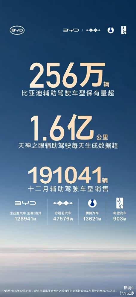 如果每天有1.6亿公里的驾驶数据涌入系统,会发生什么?比亚迪的答案是:让辅助驾驶从“尝鲜功能”变成“出行守护者”。截至2025年底,比亚迪搭载天神之眼的车型累计保有量突破256万辆,天神之眼车型持续热销,也意味着每10台中国品牌的智能驾驶车中,就有近4台来自比亚迪。