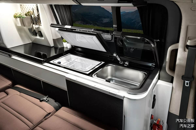 至于车内的设计和功能,大家可以直接看下图,像双人床、冰箱、洗手盆等都没缺席,给人的感觉也很温馨。