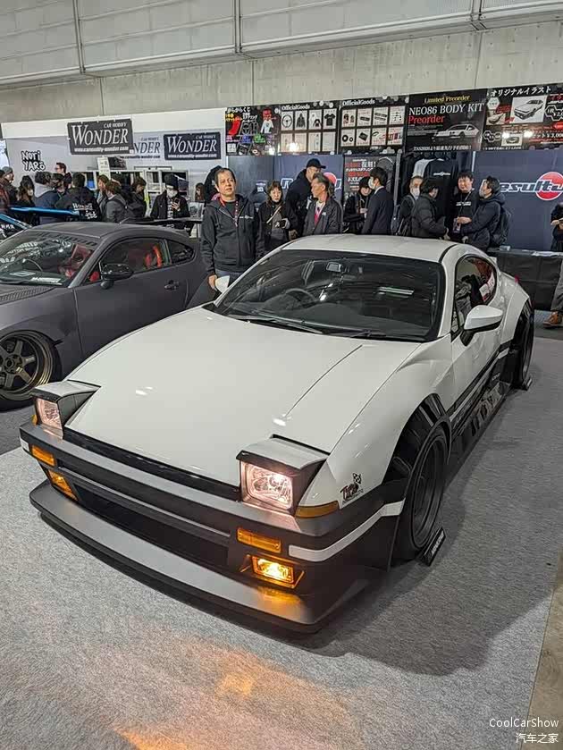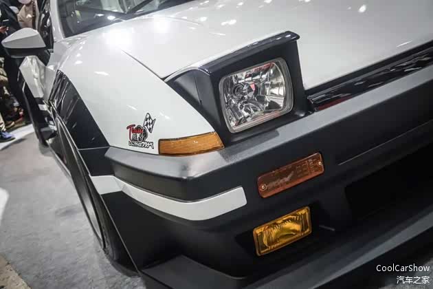 我没说错吧,你也没看错吧,这车头确实是一辆完完整整的AE86,不过到了侧面就发现端倪了,再走到车尾,终于真相大白了,原来是一辆 丰田GT86魔改,还带了宽体。这样子把外观移植确实比贴豆腐店拉花更有创意!