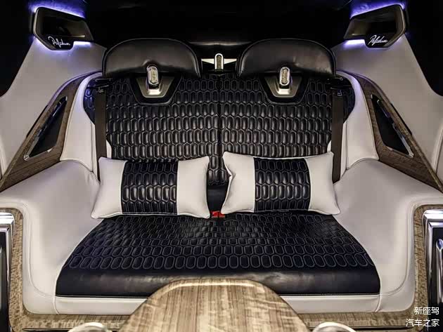 有的朋友可能会说,现在舍弃后两排的行政级SUV也不是没有,但这种联排大沙发的后排你见过吗?AZNOM Palladium在两侧加上了宽大的扶手,里面是隐藏式酒柜,前面还有木质小桌板。中间则是连排设计,没有腿托,靠背可以调节,讲真的,这个东西你说是车厂去家具厂定制的我都信。