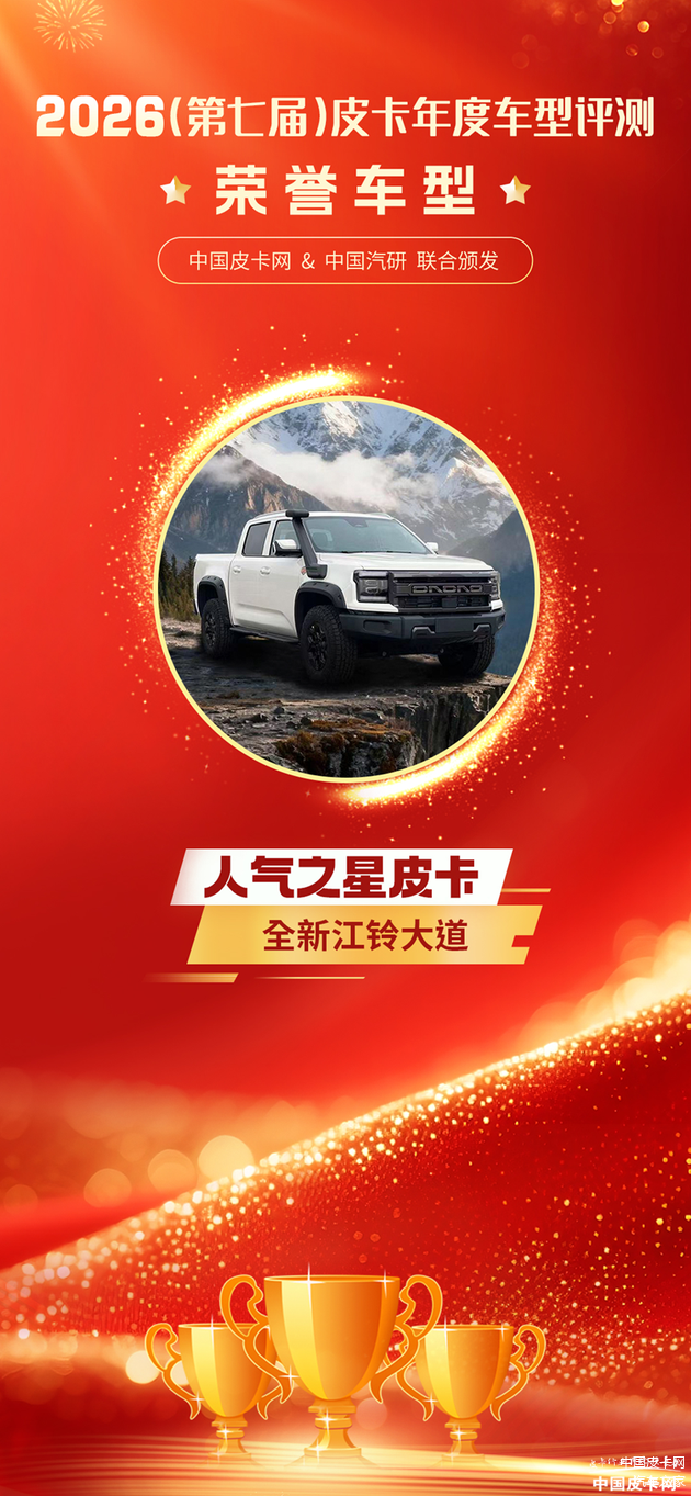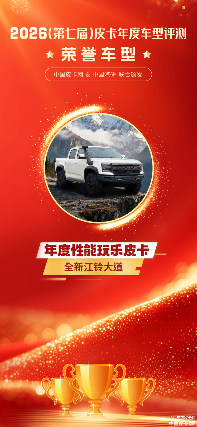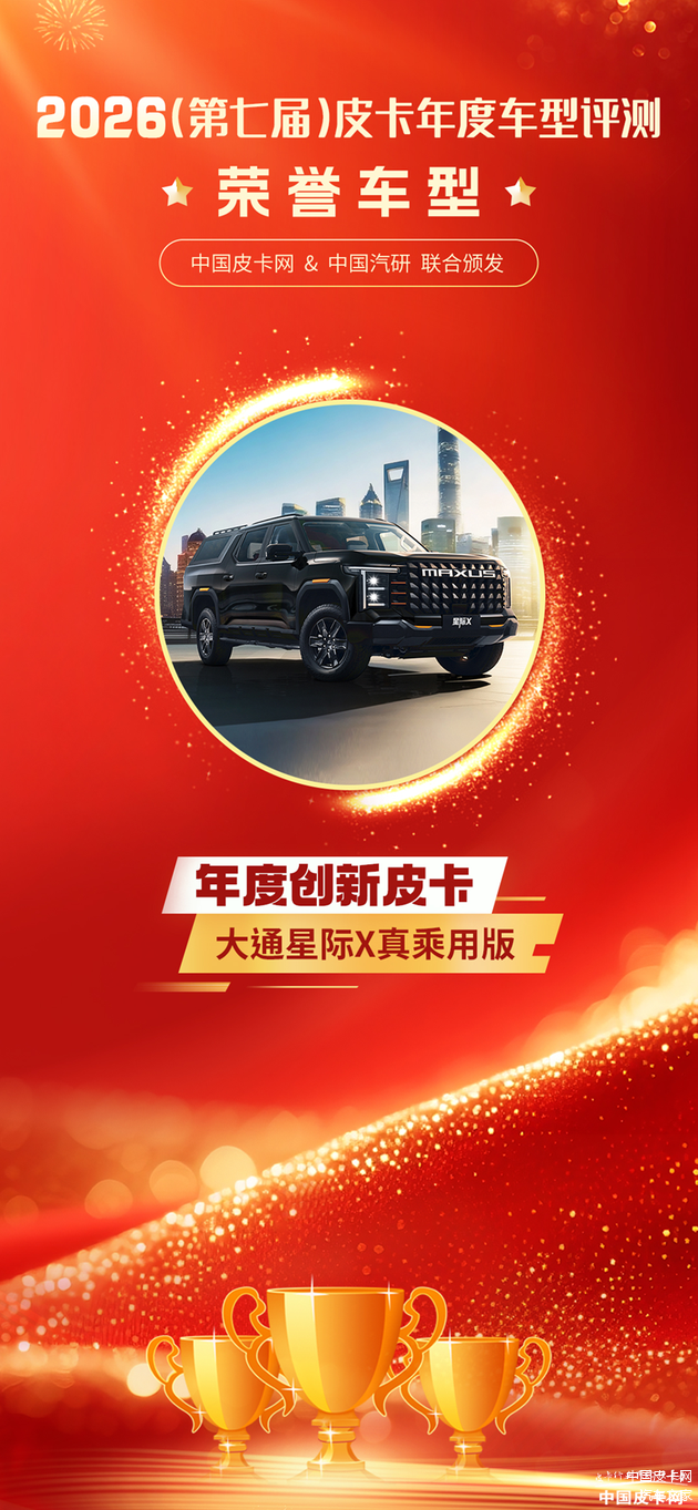 2026年1月22日,皮卡年度车型盛典在北京隆重举行。作为每年皮卡界的“奥斯卡”,盛典中最重要的就是公布在此次评测活动中推选出来的各个车型奖项。车型奖项既可以彰显企业和旗下车型的荣誉,也成为了消费者购车参考依据。奖项到底花落谁家,下面即刻揭晓。