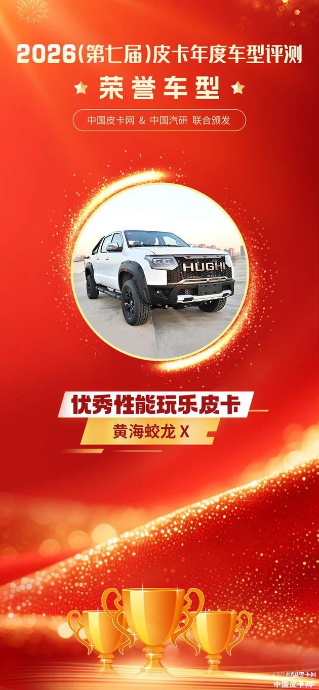 黄海蛟龙X作为全新改款车型,在保留商用实用性的基础上,强化了基础越野素质,具备良好的通过性,其可作为越野改装的良好基础平台,兼顾日常工作与周末玩乐,为追求多功能与越野潜力的用户提供了性价比不错的入门级选择,因此荣获优秀性能玩乐皮卡称号。
