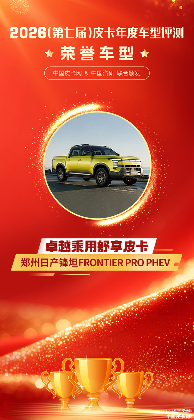 锋坦Frontier Pro PHEV定位全球化高端家用市场,在制动、操控、空间等乘用化测试中表现优秀。以“硬核科技美学”为设计理念的内外设计,突破传统皮卡定位的潮流元素,营造出全新一代皮卡应有的设计美感。其兼顾舒适与越野能力的特质,让它在满足家庭出行需求的同时,也能应对多数非铺装路面,是一款全面发展的家用舒享皮卡,因此荣获卓越乘用舒享皮卡称号。