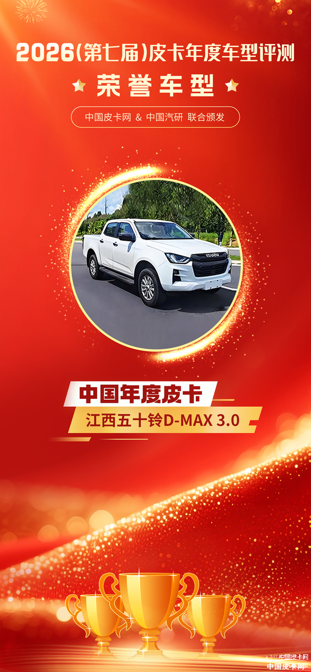 江西五十铃D-MAX 3.0在各项客观测试中表现均衡,多个项目位居前三,展现出全面而扎实的产品力。用户期盼已久的全新的4JJ3发动机性能优异,最大功率可达152kW,预计扭矩也会超过550N·m,将会登顶中型皮卡动力巅峰。而作为一款全球车型,其设计、安全与性能标准均符合国际主流市场要求,整体素质领先同级。无论是日常载物、长途出行还是轻度越野,它都能胜任,真正诠释了“多面手”皮卡的实用与可靠,因此荣获中国年度皮卡的至高奖项。