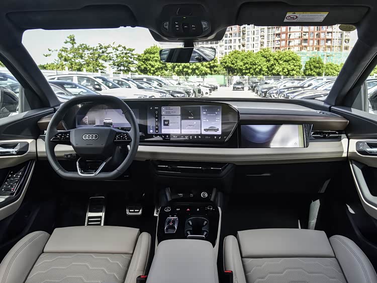 进入车内,内饰延续奥迪科技座舱理念,11.9英寸全液晶仪表、14.5英寸OLED中控屏与10.9英寸副驾娱乐屏组成三联屏系统,支持三指飞屏与AR-HUD增强现实导航,显示细腻且操作流畅。触手可及的区域均采用软性材质包裹,德系精工质感突出。2995mm长轴距带来充裕乘坐空间,后排地板完全平整,180cm乘客坐中间也能舒展双腿,头部空间虽受溜背影响,但日常乘坐无压抑感。储物空间设计贴心,全车遍布多处储物格,前备厢容积64L可放背包,后备厢常规容积511L,后排座椅按比例放倒后可拓展装载能力。