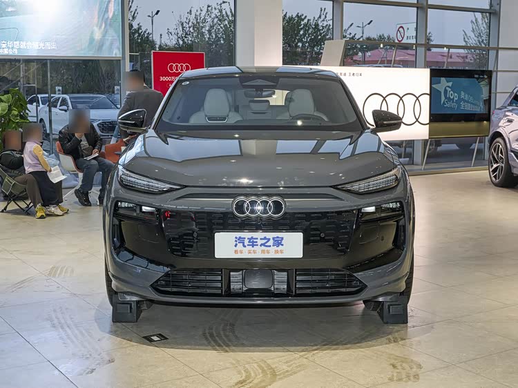 我们首先来看新车的外观设计方面,奥迪Q6L Sportback e-tron的前脸设计堪称电动化美学的典范。八边形封闭式进气格栅采用3D立体浮雕工艺,搭配分体式矩阵LED大灯组,前脸既保留了奥迪标志性的品牌辨识度,又彰显了电动身份。 前保险杠两侧的导流槽设计不仅优化了空气动力学,更赋予车头强烈的运动气息。值得一提的是,车标Logo支持发光功能,与日行灯、尾灯形成视觉呼应,科技感十足。