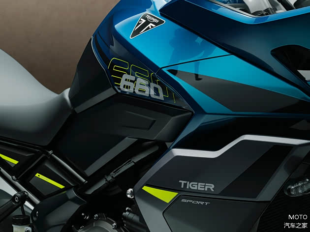 Tiger Sport 660同样搭载全新660c.c.三缸引擎,座高、铝合金轮圈与Michelin轮胎都和Trident相同,但整车重量略重,达211公斤(,搭载18.6升大油箱。