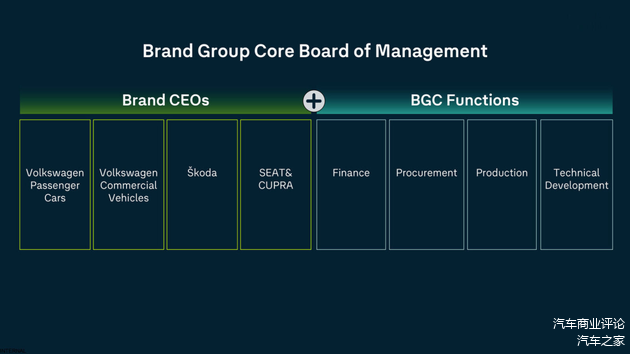 与此同时,研发、采购和生产三大核心职能将不再下放至各品牌,而是全部收归集团位于沃尔夫斯堡的总部统一管理,由新成立的品牌核心管理委员会(BGC)在跨品牌层面进行管理。