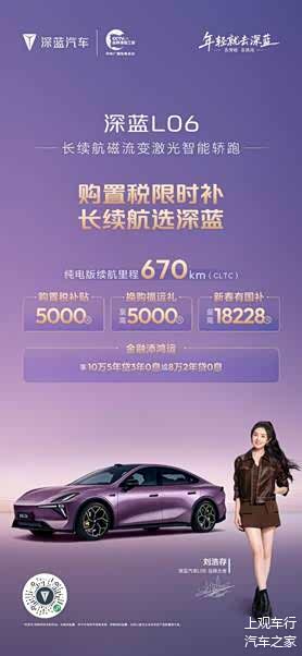 同时,深蓝L06以满满诚意推出多重购车福利,大幅降低智能座驾拥有门槛。消费者购车即享5000元购置税补贴、至高5000元换购福运礼、至高18228元新春国补,金融方案可享10万5年贷3年0息或8万2年贷0息。年轻消费者无需背负高额资金压力,就能轻松入手这款颜值与续航兼备的智能轿跑。
