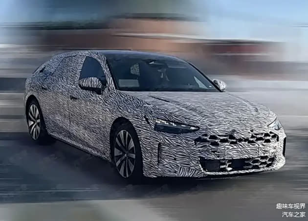 外观设计上,根据曝光的谍照来看,新车前脸延续奥迪家族化设计,科技感与精致感拉满。车头配备数字LED日行灯,可以变换图案,提供8种个性化灯光签名可选,搭配发光幻影光环徽标,夜间点亮后呈现3D立体效果,辨识度极高。六边形进气格栅采用蜂窝状布局,辅以镀铬饰条勾勒边框,前包围两侧导流槽优化空气动力学表现,同时为底盘散热提供保障。