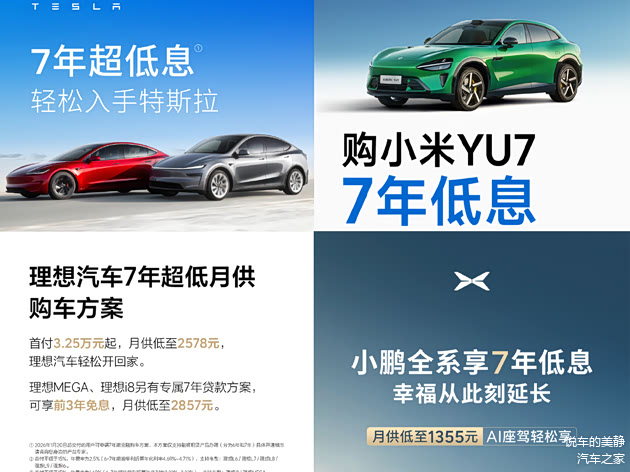 你们敢信吗?2026年开年,中国车市最卷的居然不是价格,而是利息!特斯拉率先扣响了2026年车市金融战的“核发令枪”,紧接着小米、理想、小鹏全线跟进。84期超长还款、低至0.98%的年化利率,这听起来简直像是车企在给消费者发福利。那这长达七年的“低息诱惑”,本质上是把用户当韭菜,收的一场更高明的“智商税”?