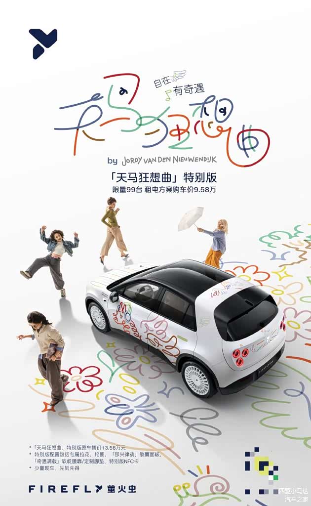 与此同时,萤火虫将会推出天马狂想曲特别版车型,售价为13.58万元,租电方案为9.58万,限量99台,并且将于1月18日开启交付。