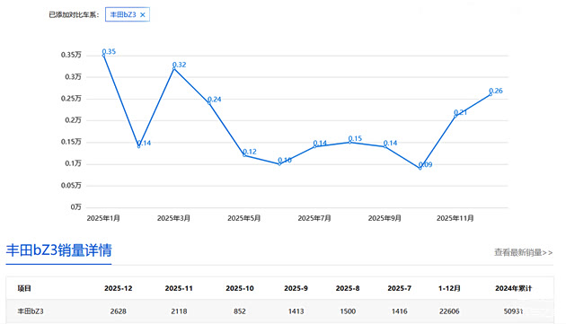 综合实力不俗的丰田bZ3,2025年全年的市场表现如何呢?