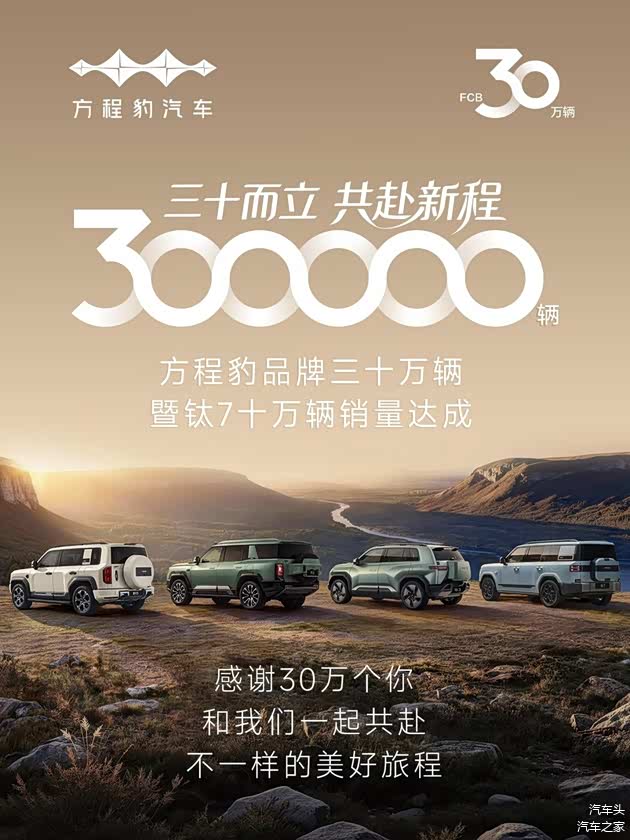 1月15日,方程豹汽车宣布品牌累计销量突破30万辆,不仅成为最快达成30万辆的新势力品牌TOP2、更是20-30万辆新势力品牌增速TOP1,成为车圈年度最火顶流。