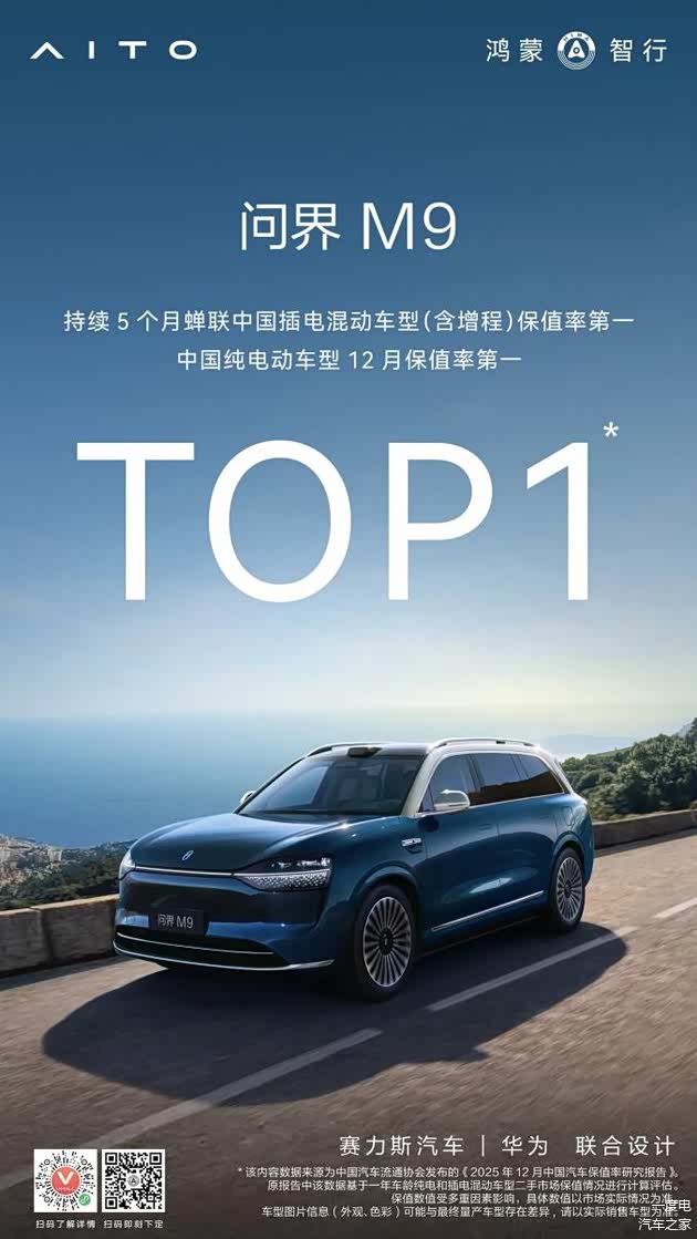 回望2025年,问界M9秉持“智慧重塑豪华”的理念,从保值率领跑到市场热销,再到用户口碑认可,持续创造行业高光。它不仅连续五个月蝉联中国插电混动(含增程)车型保值率第一,更以累计突破27万辆的交付量,连续21个月稳居50万级销量标杆。在用户口碑层面,问界M9连续四次蝉联NPS(净推荐值)第一,是新能源SUV车型中第一个、唯一一个连续四次获得NPS第一的车型。