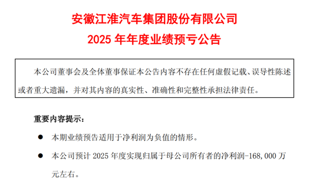 几天前,安徽江淮汽车集团股份有限公司发布了2025年度的业绩预审公告。