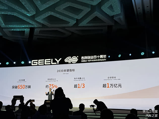 1月22日,吉利控股集团(以下简称“吉利控股”)发布“一个吉利,全面领先”2030战略目标,并公布了2030关键指标;全球总销量突破650万辆(乘用车+商用车),营收超1万亿元,跻身全球车企销量前五,其中新能源销量占比约75%,海外销量占比超三分之一,开发覆盖A到E级车型的全球顶级的新能源架构,基于全新架构的平均单车型研发周期和综合成本下降30%以上。