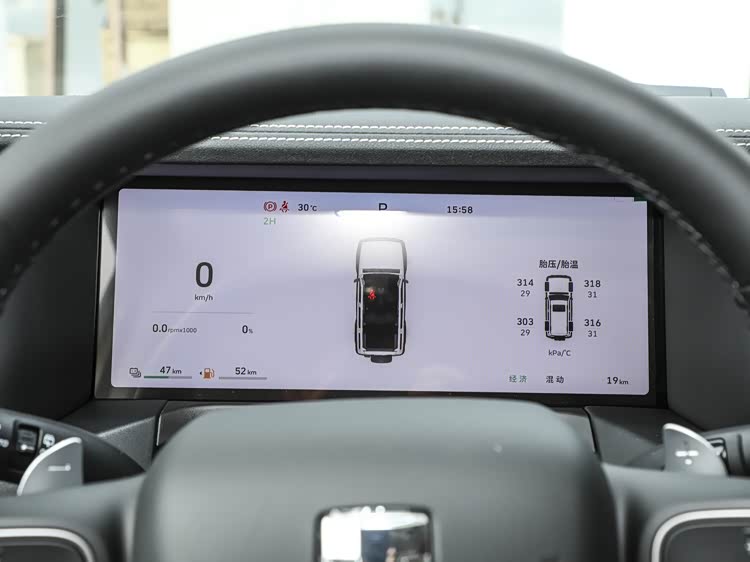 这是它最核心的竞争力,彻底打破了“硬派越野=油老虎”的固有认知。它的WLTC工况纯电续航105km,纯电里程并不长,它重要的是在协同发动机工作时,能大幅降低油耗,短程驾驶能节省一笔可观的油费。即便没有充电条件,它的官方WLTC工况馈电油耗8.4L/100km,相比传统燃油硬派越野车12L以上的油耗,降幅明显。当然在越野活动中,油耗还会上浮,但有电机的辅助,它依然可以在同等工况下比燃油版省油,同时全速域的动力性能要远强于燃油版,这笔帐怎么算都不亏。
