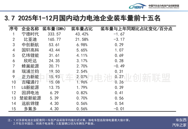 车东西1月22日消息,日前,中国汽车动力电池产业创新联盟发布了2025年全年动力电池装车数据,“宁王”市占率进入了负增长。