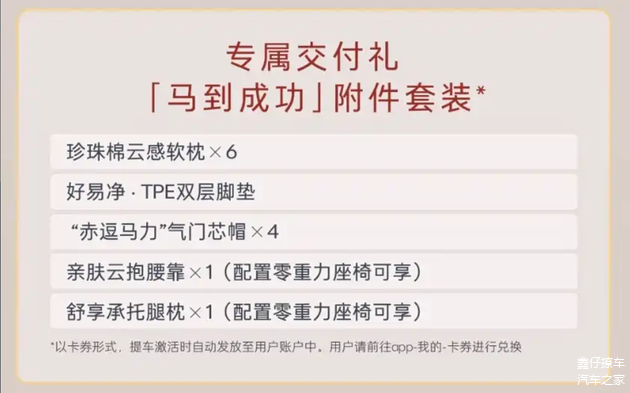 车内同样引入了定制化方案,包括棕米双色内饰、头枕刺绣以及方向盘饰条,进一步强化座舱的个性化特征。附带的附件套装涵盖6个软枕、双层脚垫、专属气门芯帽,以及零重力座椅专属腰靠和腿枕。在日常使用中,这些配置可提升长途乘坐舒适度,同时增强车内整洁性和功能性。尤其是零重力座椅的腰靠与腿枕设计,可以有效减轻驾驶者在连续驾驶下的疲劳感。