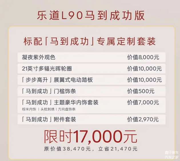 乐道L90马到成功版在原有基础上增加了外观、内饰、车机及配件套件,使得车型在日常使用与个性化体验上更加丰富。同时,通过金融政策和购置税优惠降低购车门槛,为消费者提供多维选择。整体来看,该车型适合关注城市日常通勤舒适性、长途驾驶支撑和个性化配置的用户。对于购车决策,建议优先关注专属套装内容与金融方案匹配情况,以实现价值最大化。