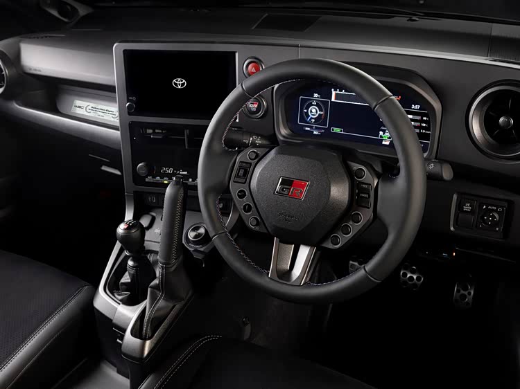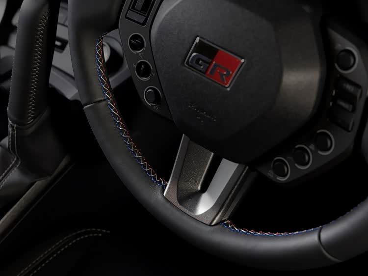 车内布局延续GR Yaris Morizo RR的驾驶取向,方向盘尺寸偏小,便于操作和快速转向响应,中央控制区域集成驾驶相关多功能按键。车辆配备立式手刹,适合快速操控和赛道驾驶环境。座椅与门板上加入限量版标识,以及法国国旗装饰灯,既体现纪念意义,也增加驾驶仪式感。整体布局强调驾驶员触手可及的功能性,兼顾操控效率和舒适性。