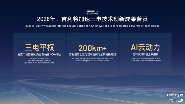 淦家阅表示:“2026年的汽车市场竞争将更加激烈,市场也存在诸多的不确定性,但行业高质量发展的大趋势不会改变。只有深耕技术、坚持创新,才能构筑企业的核心竞争力。吉利将继续秉持‘造每个人的智能精品车’的初心,以技术创新推动汽车产业的高质量发展,为全球用户创造安全可靠、智能便捷的出行体验。”