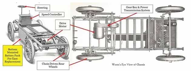 爱迪生跨界造车的初衷,是为了推广他的镍铁电池,但价格问题始终是其普及的绊脚石。尽管比铅酸电池版本轻30%,配备双直流电机总功率10马力,最高时速达32km/h,宣称续航130公里,且采用爱迪生专利的电加热座椅。
