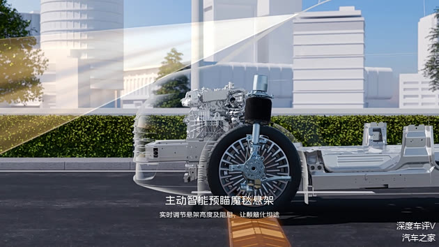 底盘部分,新车采用前双球节麦弗逊式、后多连杆独立悬架,麋鹿测试成绩76.8km/h,百公里制动距离仅34.8m。Max版和金晖典藏版还配备CCD连续可变阻尼减振器和65mm行程空气悬架,支持车身高度自动随速调节。金晖典藏版额外提供主动魔毯预瞄功能,可对悬架和阻尼进行毫秒级调节。
