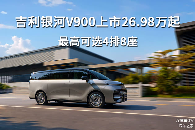 1月20日,全新中大型MPV吉利 银河V900正式上市,共推出1180四驱Pro版、1220四驱Max版、金晖典藏版3款配置版本,指导价区间为30.98万-36.98万元,限时价26.98万-32.98万元。新车基于GEA Evo新能源架构打造,搭载1.5T增程动力系统、千里浩瀚辅助驾驶H5方案,中高配车型提供6座、7座、8座三种座椅布局。
