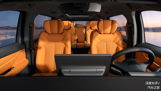 配置差异上,Pro版内饰配色为霞光橙,Max版和金晖典藏版可选霞光橙或晨曦米。Pro版全车配备座椅记忆功能,前排座椅支持通风、加热、电动调节功能,第三排座椅靠背最大仰角可达137°。Max版前排座椅增加按摩功能,二排座椅配有扶手屏、电动腰托和腿托,支持通风、加热、按摩;提供19.8英寸AR-HUD抬头显示、17.3英寸吸顶娱乐屏、2.18㎡全景天幕、9.1L冷暖箱、4个50W风冷无线快充,配备最高27扬声器的FLymeSound无界之声、香氛系统、AQS空气质量自动控制系统、256色律动氛围灯。金晖典藏版在Max版配置基础上,增加高清流媒体内后视镜、负氧离子发生器,方向盘和座椅采用NAPPA真皮材质,第三排座椅具备通风、加热功能。Max版和金晖典藏版还提供2+2+2式6座、2+2+2+2式8座选装布局,其中第三排独立座椅可180°放平,支持侧滑门二排侧通道、二排中央通道、后备箱入口三种进出路线。