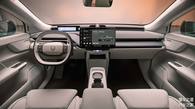 内饰方面,简约的设计风格,值得注意的是,车内大量采用悬浮式设计理念,载扁平的液晶仪表盘,双辐式双拼皮质多功能方向盘,车内也出现了实体物理按键,中控台和中央扶手之间为断开式布局。大尺寸中控屏,内置谷歌Gemini人工智能助手,配置方面,配备28个Bowers & Wilkins音响系统。储物空间方面,中控台下方拥有手机无线充电面板以及可开闭的储物槽。