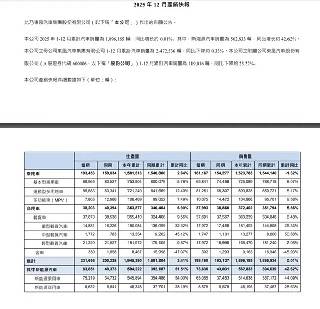 受自主与合资双双未达标影响,集团母公司全业务板块整体销量为247.7万辆(东风集团股份口径为189.62万辆),达成率约82.6%,未能实现“双百均衡”格局。