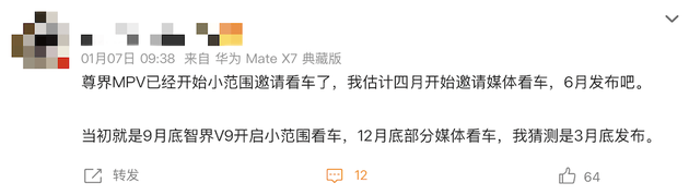 当前业内已经有消息称,尊界MPV已经开始小范围邀请看车。