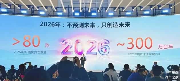 华为智能汽车解决方案BU CEO靳玉志在华为乾崑媒体日上透露2026年“小目标”:2026年,预计全年搭载华为乾崑系统车型数量将超过80款;到2026年底,累计整车搭载量将突破300万台。
