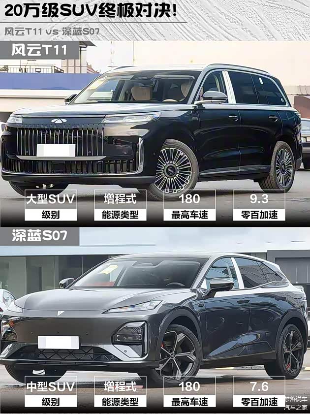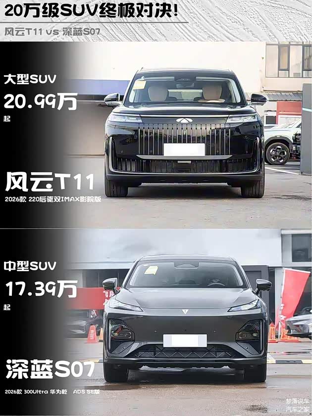 家人们!今天来唠唠两款20万级增程SUV的硬核对比—— 风云T11 2026款 220后驱双IMAX影院版 vs 深蓝S07 2026款 300Ultra华为乾崑ADS SE版!作为开过两台车的真实车主,掏心窝子分享实测干货👇