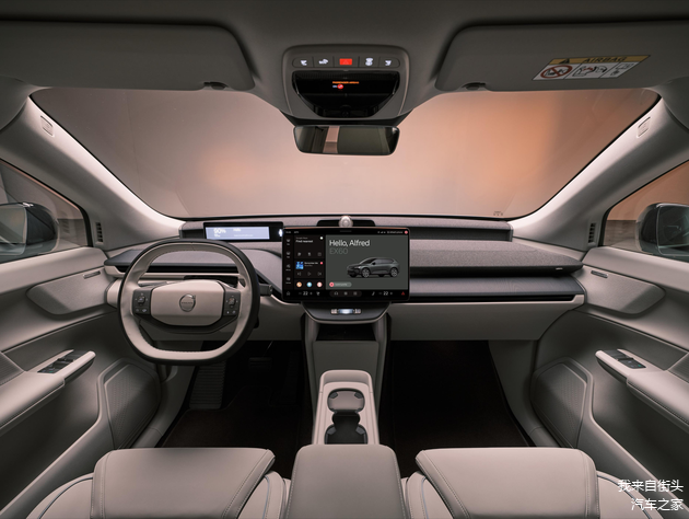 进入车内,EX60的内饰设计与EX30和EX90略有不同,整体并未追求极端简化。它的中控屏幕采用横向设置而非过去的直立式,仪表台中央并未设置传统冷气出风口,左右两侧则采用狭长的隐藏式设计。