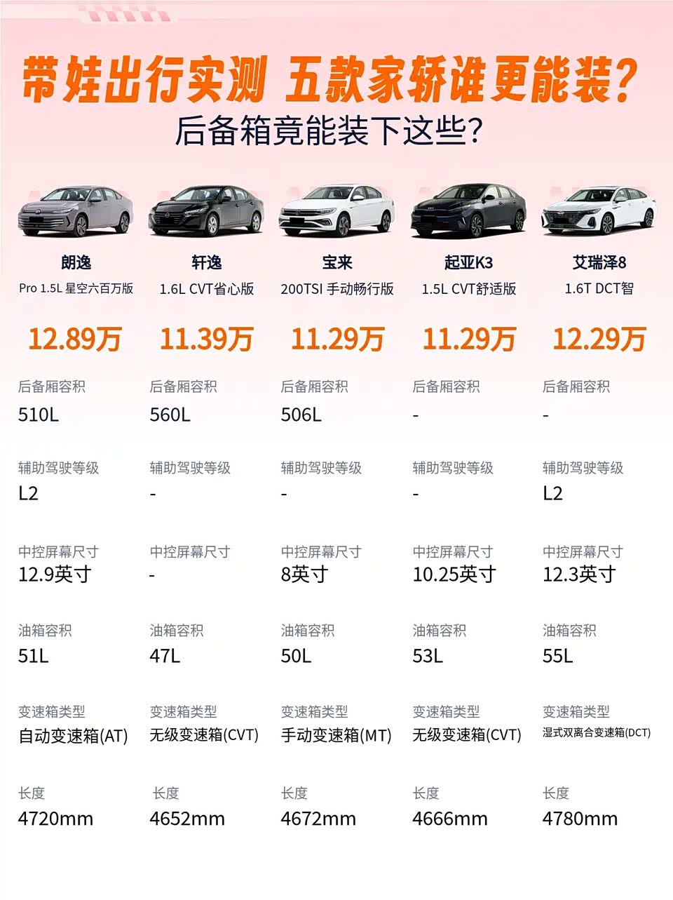 新手奶爸们看过来!带娃出行最头疼的就是后备箱不够用,婴儿车+露营装备+零食箱...五款热门家轿实测对比:
