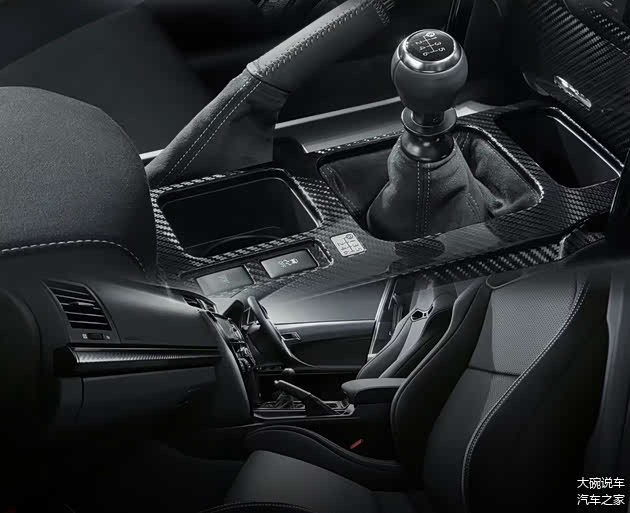 车内在设计上比较动感,采用了硬朗的车身线条,提供碳纤维的装饰,搭载中控屏幕,并且依旧保留了实体按键,方向盘的设计也是比较动感的造型,座椅运用了桶型的风格,并且带有GR的标识。