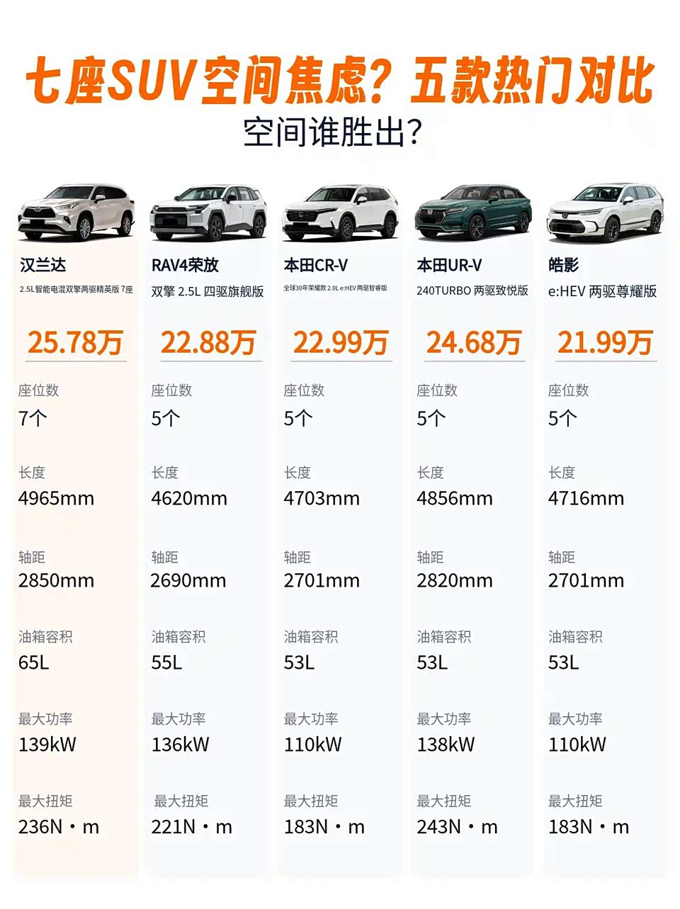 预算25万,你会选汉兰达的大空间,还是CR-V的均衡配置?评论区聊聊你的选择!