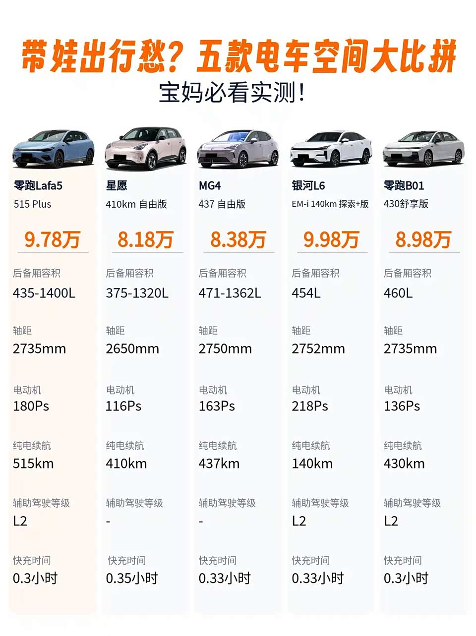 带娃出门总嫌车小?五款10万级电车实测,零跑Lafa5居然赢在这!🚗👨👩👧